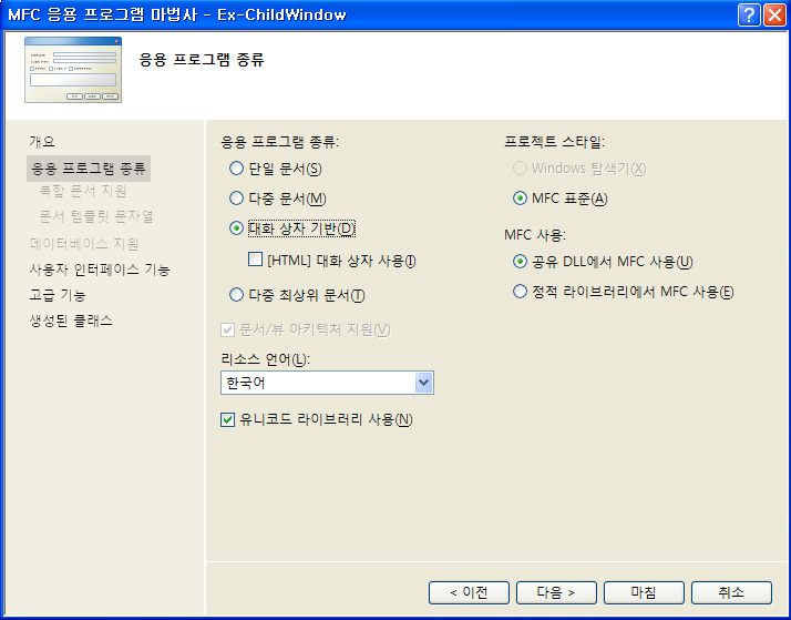 1. 먼저 대화상자기반의 MFC프로젝트를 생성합니다.