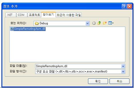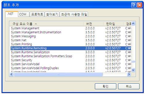 System.Runtime.Remoting.dll 과 SimpleRemotingAsm.dll을 참조추가한다