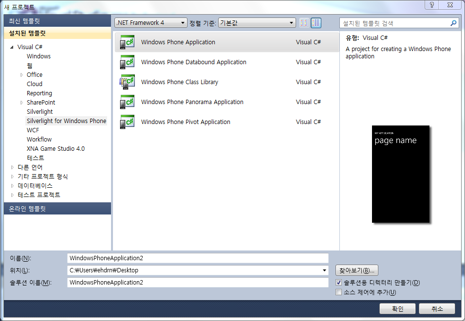 MS에서 제공해주는 WindowsPhone7 개발 툴을 설치하시면 영어로 되어있습니다. 개발툴을 설치하시게 되면