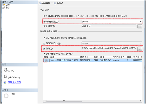 MS SQL에서 DB 복원