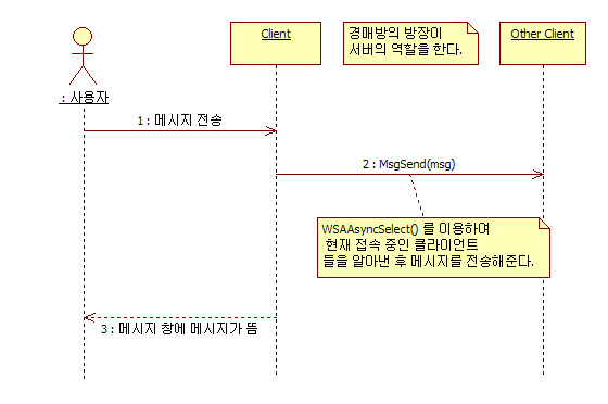 방장이 서버가 되어 다른 클라이언트들에게 메시지 전송을 한다. |
