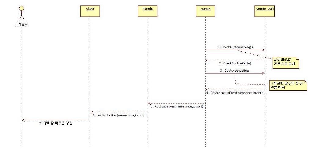 < 제안서에 추가해야 되는 사항 > 1. 로그인 – 선행작업표시 2. 로그아웃 – 상태변환 3. 경매방 개설 – 파샤드 삭제, IP, Port 전송, 리턴삭제 4. 경매결과 업로딩시퀀스, 상품명, 경매가격 등록시퀀스 제작 5. 경매시퀀스 삭제 | ||||
