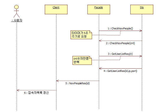 타이머가 5초마다 접속자 현황을 갱신한다. |