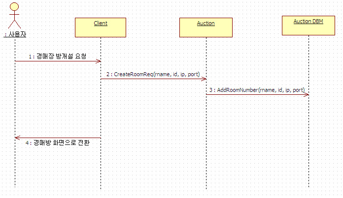 로그인 상태에서 방 개설 버튼을 눌러 경매방을 개설한다. |
