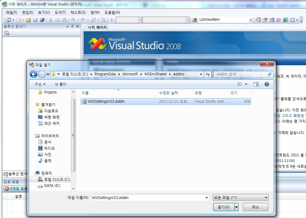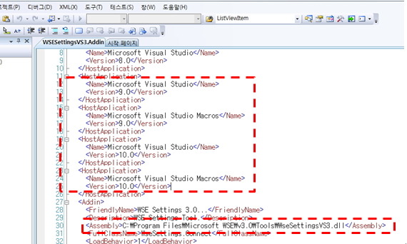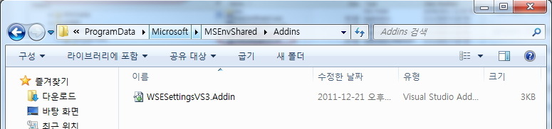위의 그림과 같이 들어가서 WSESettingsVS3.Addin을 비주얼스튜디오를 통해 열어준다.