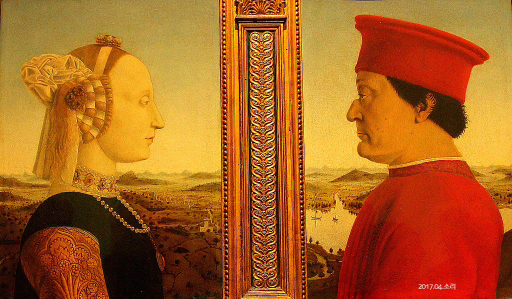 우르비노의 공작 '페데리코 다 몬테펠트로' 와 공작부인 '바티스타 스포르차'의 초상화이다