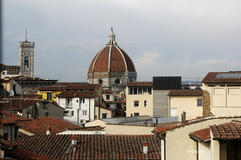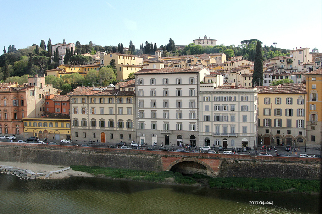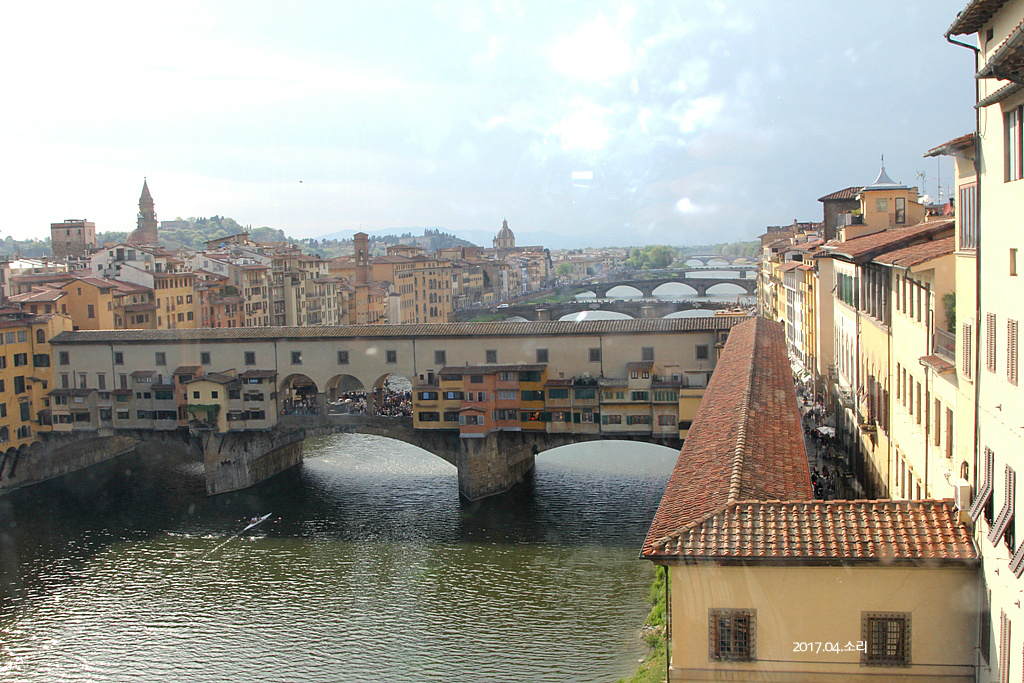 미술관 창 밖으로 '베키오' 다리가 보인다.