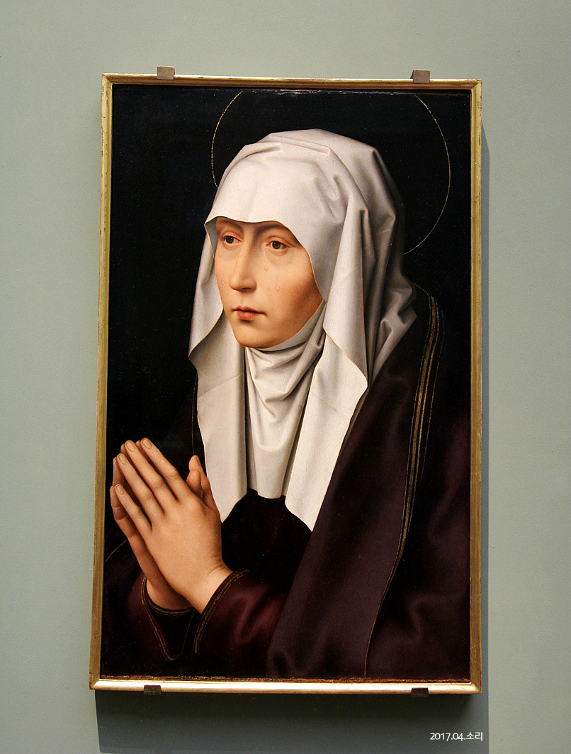성모 마리아의 머리 장식과 목선을 타고 내려오는 베일의 섬세함이 놀랍고,