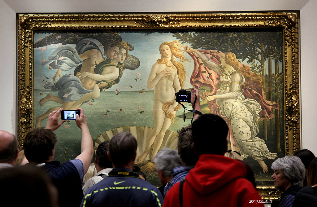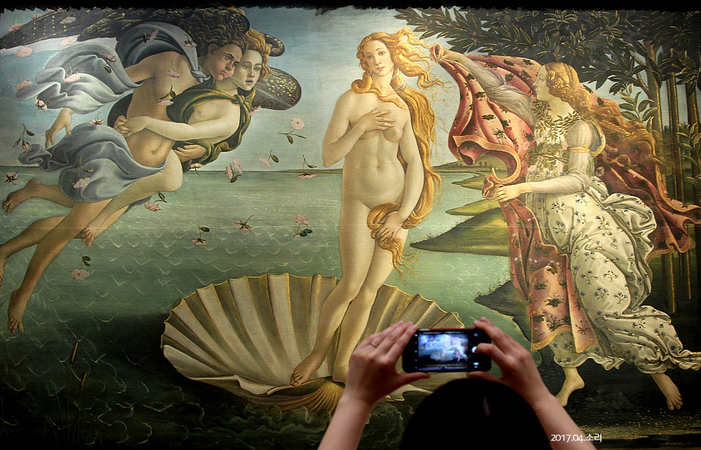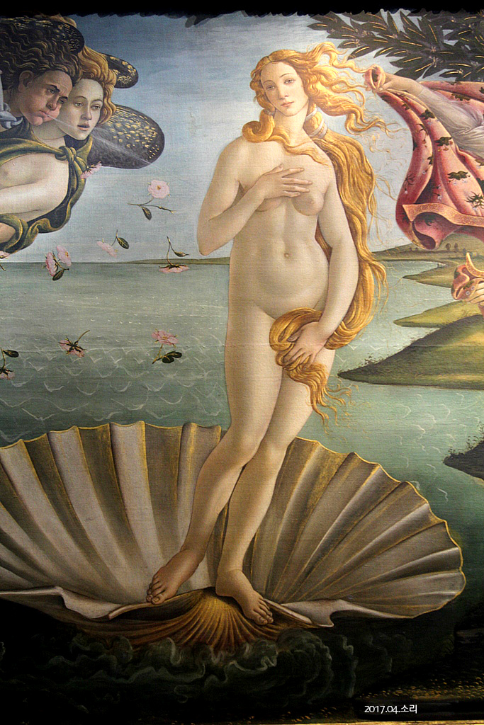 조개 껍데기에 서 있는 '비너스'는 10등신 미녀로 모댈은 당시 피렌체에서 가장 아름다운