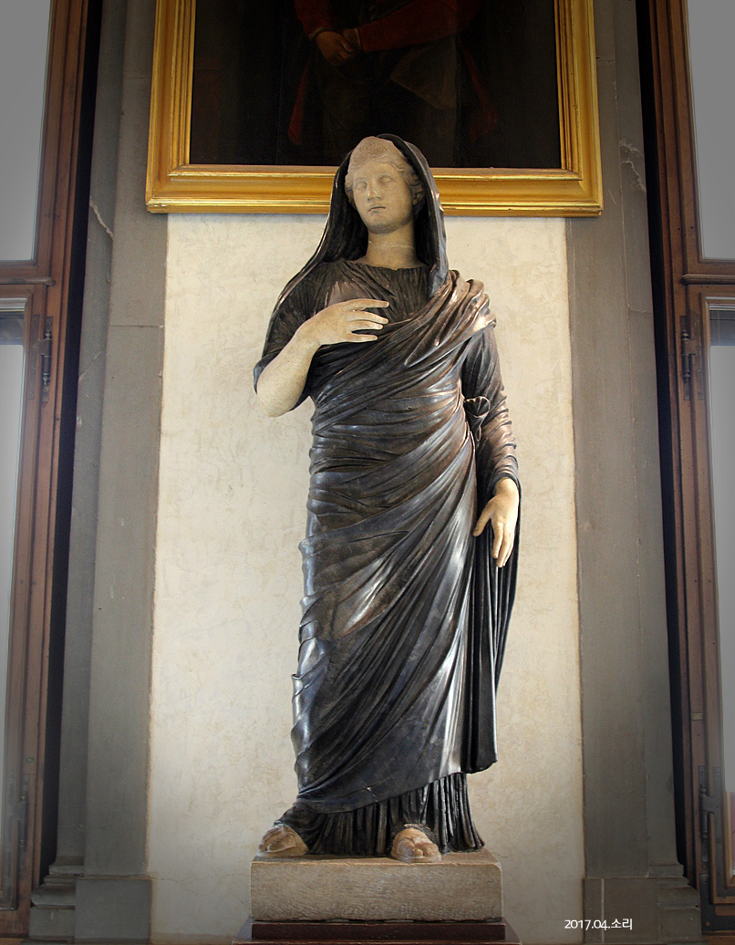 미의 여신으로 우아한 손짓과 표정을 하고있으며 머리 뒤엔 반원형 아치가