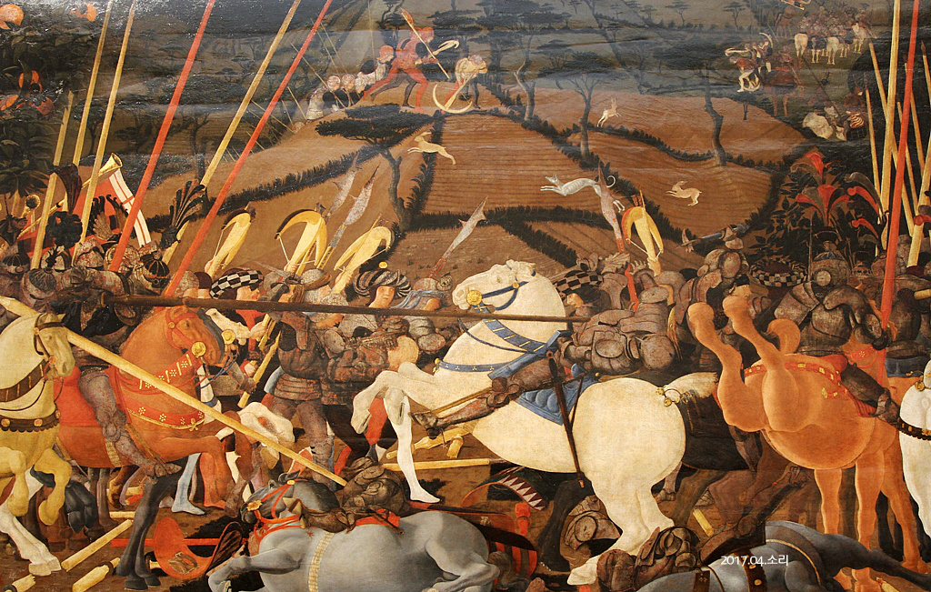 1432년 산 로마노에서 피렌체와 시에나, 밀라노 연합군 사이의 전투를 그린 작품이다