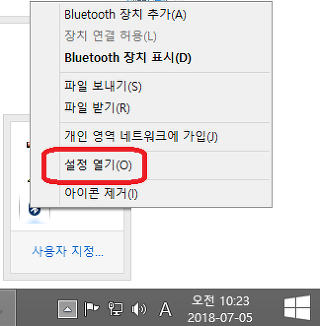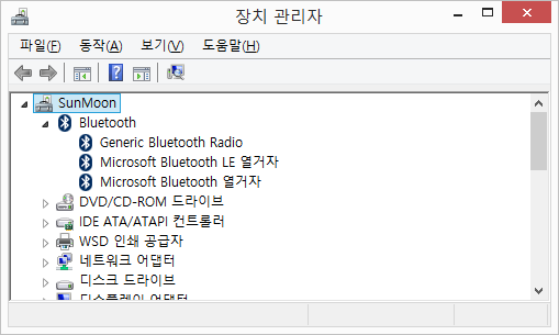 다음 그림과 같이 bluetooth에 3가지가 보인다. 이중 LE는 low energy를 뜻하며 방식이 다르니 주의해야 한다. 다른 설치 프로그램은 설치하지 말고, 기본적인 블루투스를 사용한다.