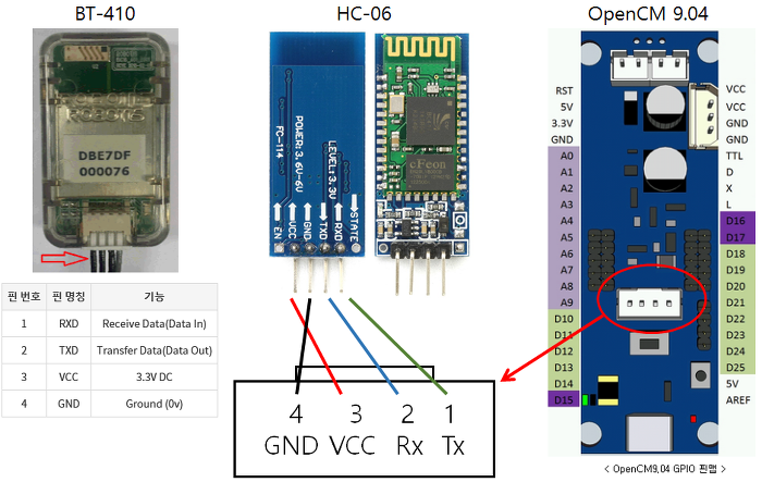 OpenCM 9.04에서 BT-410 모델이 블루투스 Slave 역할을 한다. 이번엔 HC-06을 연결해보자.
