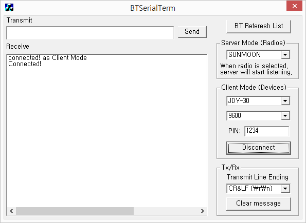 클라이언트: bthcxn.exe -nJDX-30 (JDX-30은 블루투수 디바이스 명)