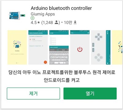 android bluetooth controller 앱을 다운 받아 테스트해보자. 명령어를 설정하면 컨트롤러 모양으로도 제어가 가능하다.