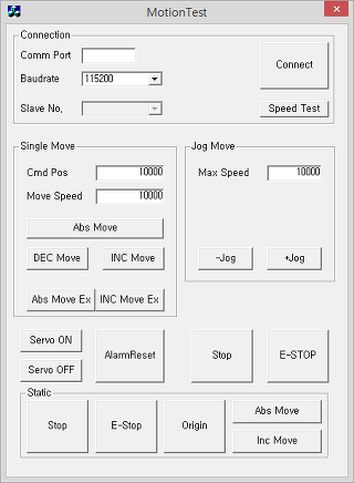 테스트 프로그램 "C:\Program Files (x86)\FASTECH\EziMOTION_PlusR\EziMOTION.exe"