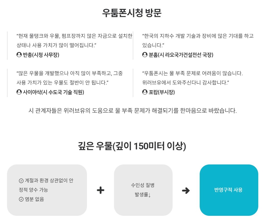 깊은 우물을 파기 위해 한국의 관정 기술이 필요하다며 지원을 부탁했습니다.