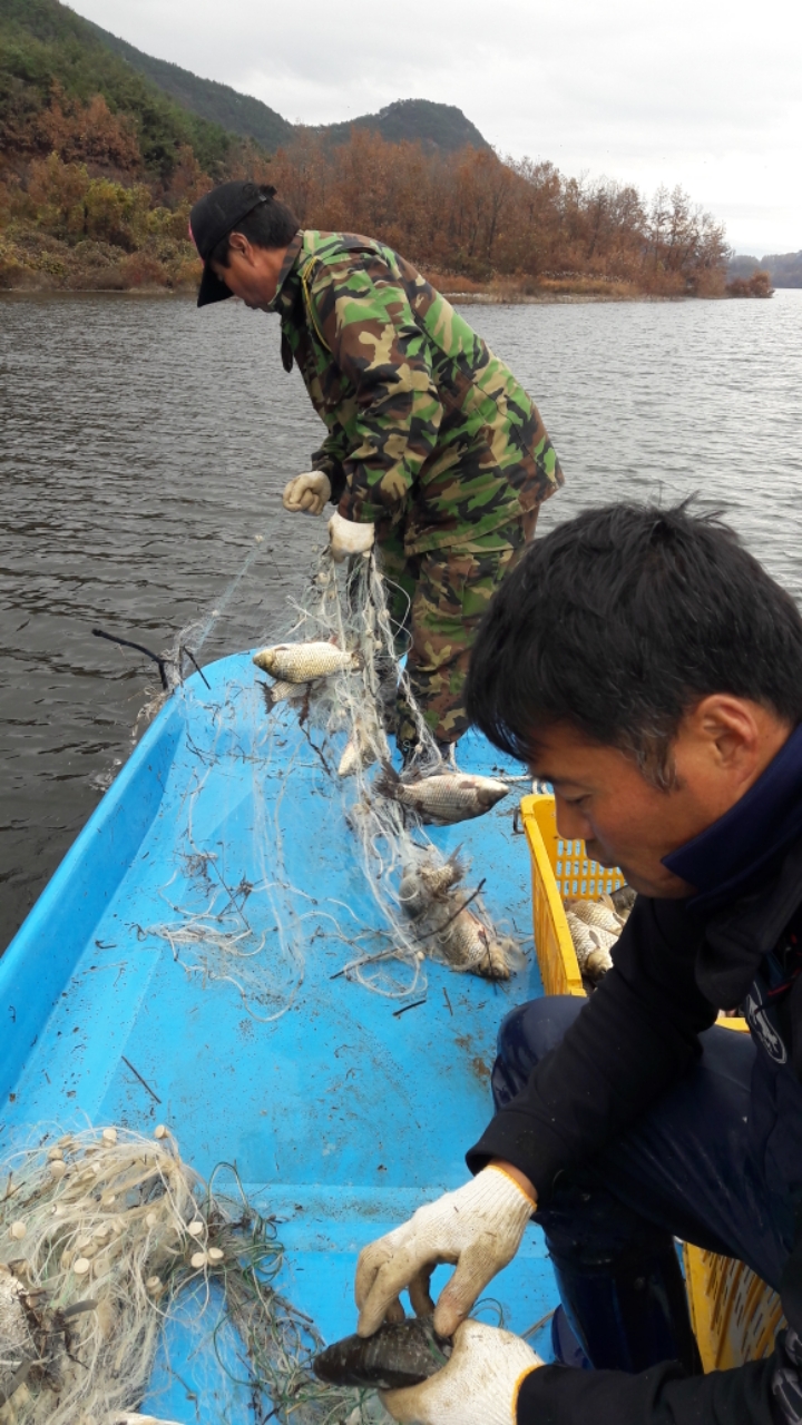 요즘에는 금강최상류 용담호 어부님들은 다들 청산어죽에 물고기 잡아서 대주시느라 모두들 밤낮없이 분주하게 어업하시고 계십니다.