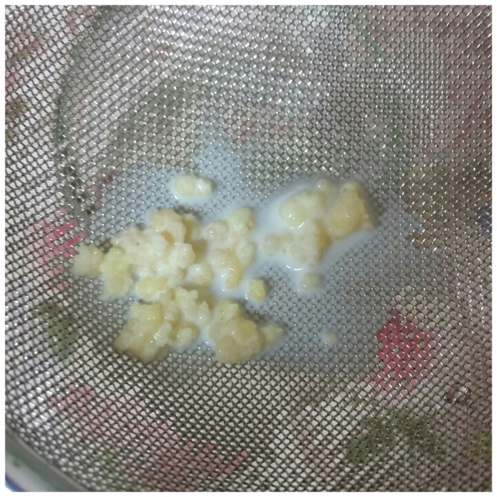 19시간만에 저녁에 다시 걸러주었습니다.두번의 배양과정에서는 티벳 주위에만 살짝 티벳유가 붙어있었고 나뭐지는 우유상태였습니다.