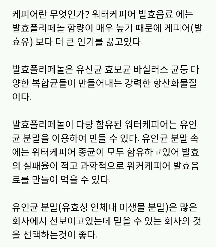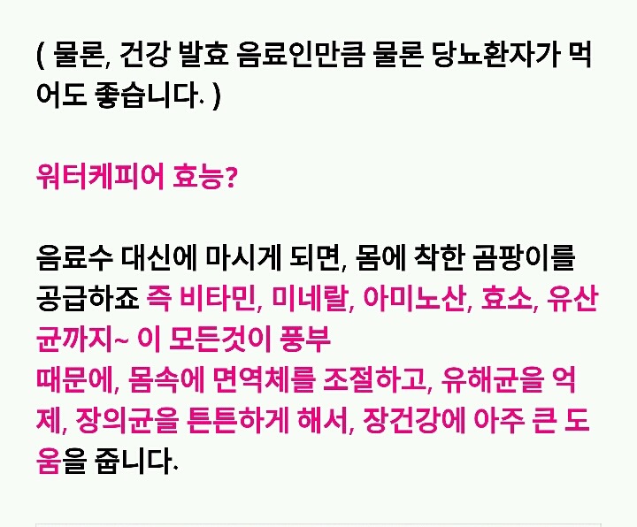 워터케피어를 키운 배양약은 탄산음료와 다르게 당뇨 환자가 섭취 가능하다 '(엄지의 제왕 보도 인용)