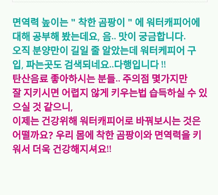 티벳버섯 분양받아 성공하면 워터캐피어에 도전해봐야 겠네요.