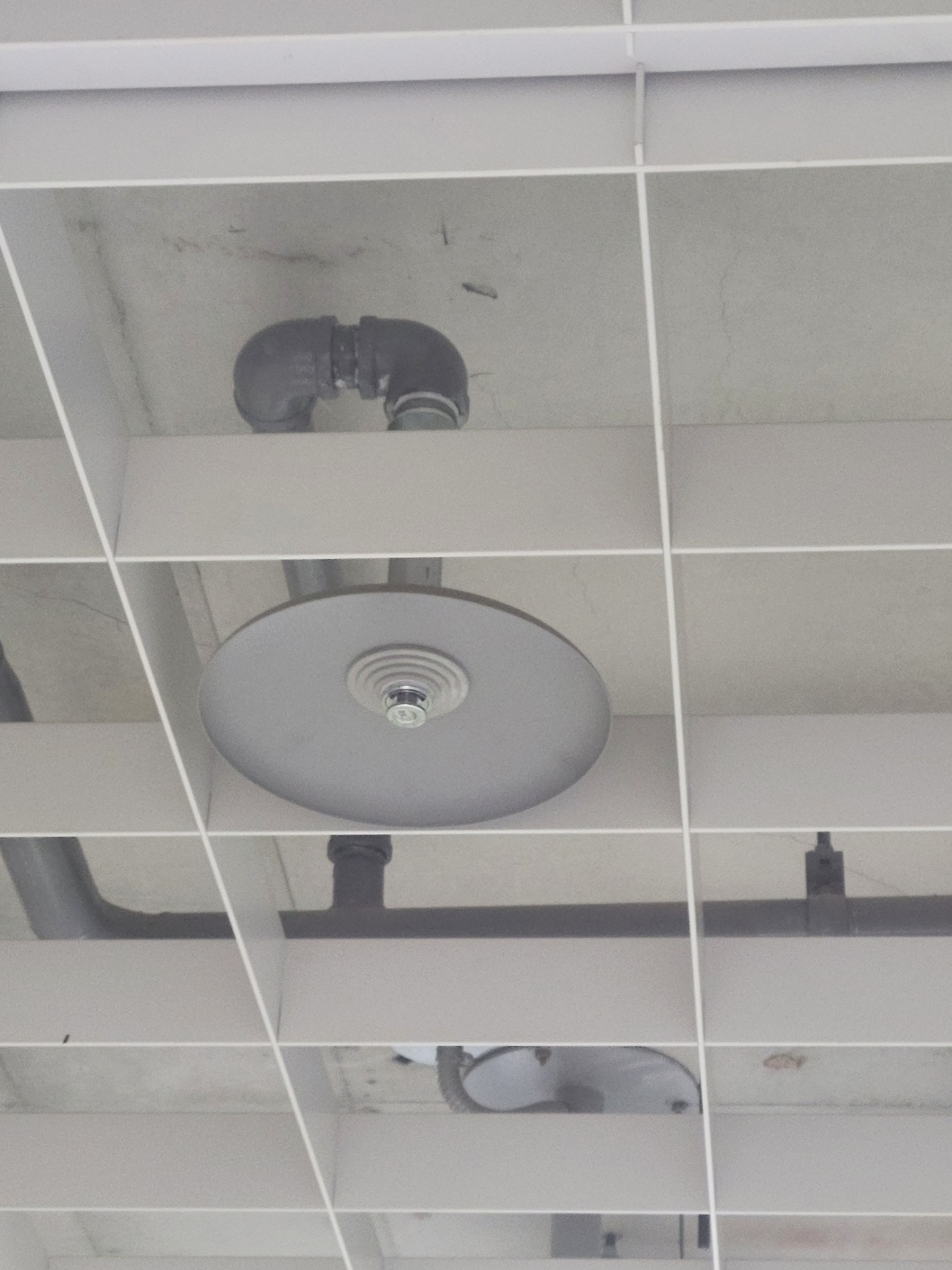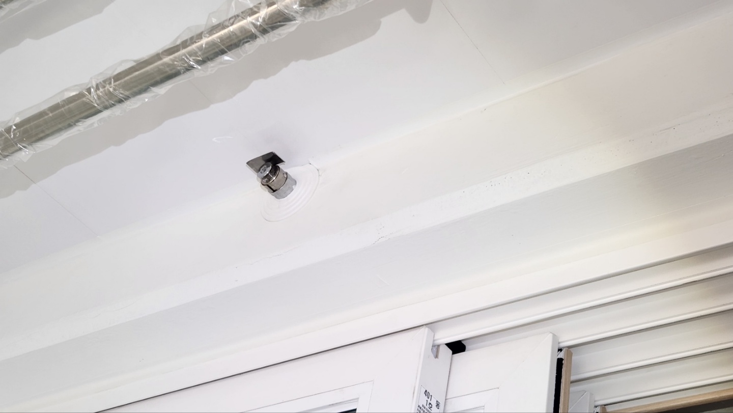 스프링클러 헤드와 에스커쳔은 천정이 있는한 동반자로서 같이 설치하고 있습니다.
