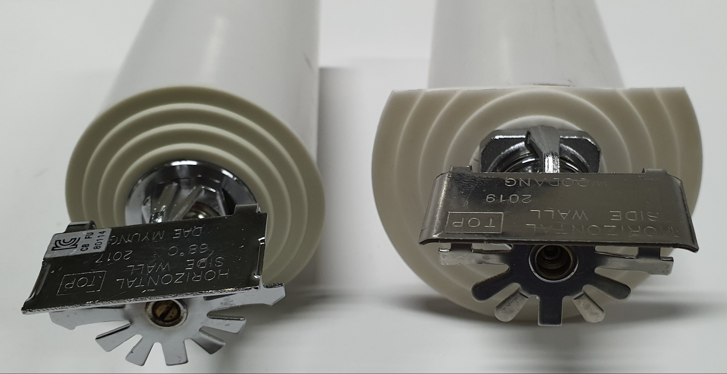 현재 설치하고있는 플라스틱 사출제품은, 화재시 열에의한 변형으로 인해서 헤드가 360도 살수하여