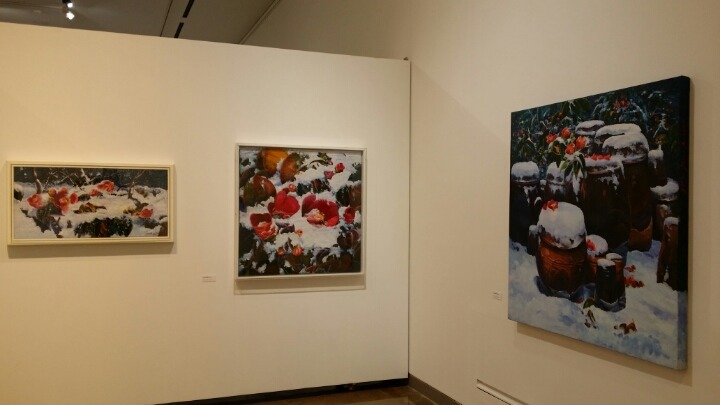 전시작 중 특히 200호 동백시리즈는 얼마전 뉴욕현대미술관에 들렸을때 나에 시선을 사로잡던 끌로드 모네의 수련이라는 작품을 연상케 했으며 어느새 자연과 나를 하나로 묶어 에덴에 누워있는 듯한 착각에 빠져들게 했다.