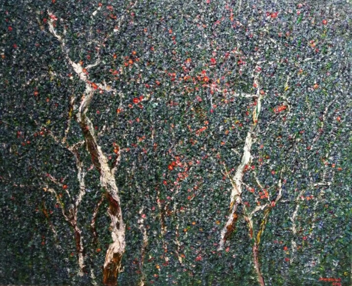 강종열의 숲은 보이는 외계의 대상을 사실적으로 묘사하는 데서 출발하지만 그림으로 보여 지는 것은 화면 밖의 사물과 유사한데서 그치는 것이 아니라 거기서 출발하여 더 멀리간다.