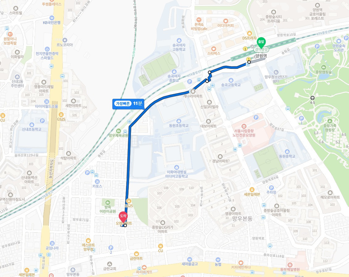 버스정류장 '금란교회 앞'에서 하차 도보 3분 거리4. 상봉역이나 망우역에서 편하게 택시 타시는 방법도 추천