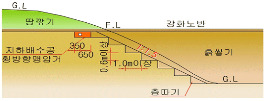 •토공접속부 구간 지하배수공 설치로 연약화 방지 •한쪽쌓기 및 깍기 치환영역 확대로 부등침하 최소화 | |
