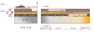 • 보조도상 : 300mm • 입도조정 : 300mm • 쌓기,깎기,암반구간 강화노반 설치 |