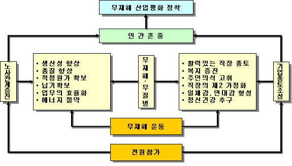 즉, 인간존중이라는 기본이념을 경영지표로 삼고 무재해운동의 기법을 도입하여 실천할 때 근로자에게까지 그 사상이 깊이 침투하여 안전과 보건을 확보하고 직장을 활성화시켜 생산성을 높이게 되는 것이다.