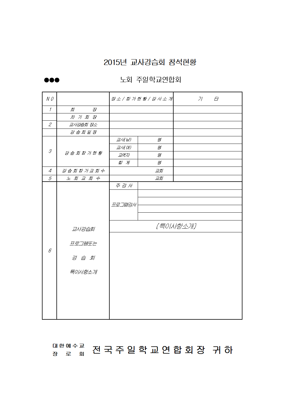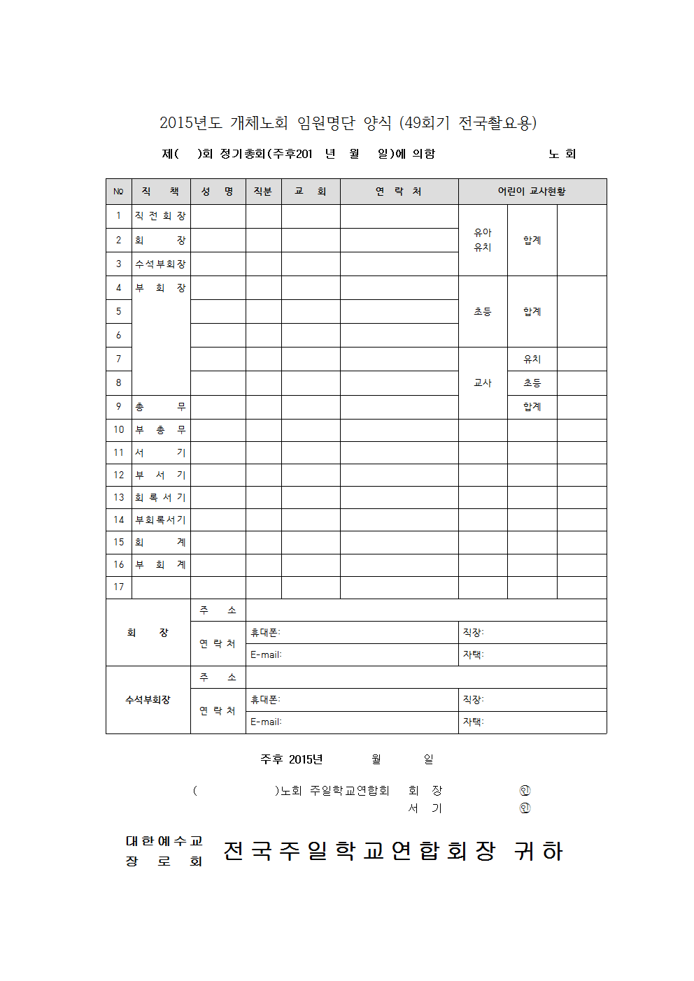 2015년도 개체노회 임원명단 양식(촬요용) 작성자you7924ok|작성시간15.04.28|조회수315 목록 댓글 0 글자크기 작게가 글자크기 크게가 2015년도 개체노회 임원명단 양식(촬요용).hwp 첨부파일첨부된 파일이 3개 있습니다. png 파일 2015년도 개체노회 임원명단 양식(촬요용)001.png 다운로드 png 파일 2015년도 개체노회 임원명단 양식(촬요용)002.png 다운로드 hwp 파일 2015년도 개체노회 임원명단 양식(촬요용).hwp 다운로드 다음검색 현재 게시글 추가 기능 열기 북마크 공유하기 신고 센터로 신고 댓글 댓글 0 댓글쓰기 답글쓰기 댓글 리스트