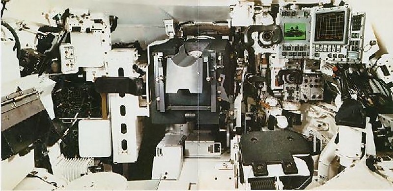 [M1A2 의 포탑 내부.. 15" 인치급 LCD모니터가 추가되어 전장의 정보를 서로 공유할수 있는 버스데이타 능력이 추가되었음을 잘 알수 있다. 포탑의 용적이 큰 덕택에 여전히 다른 전차들에 비해 공간이 넓다는것을 잘 알수 있다]