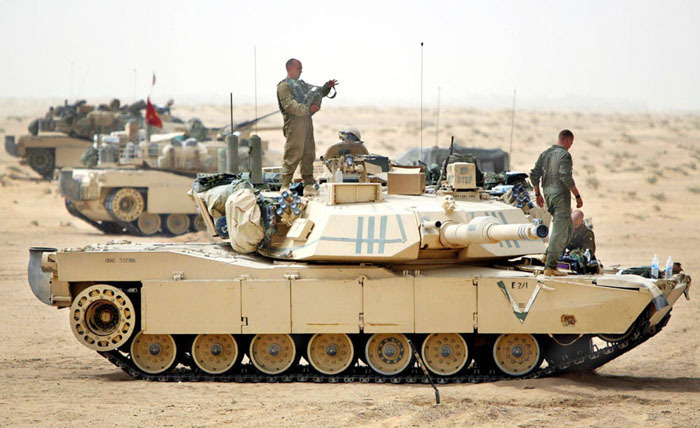 [현재 별다른 위협세력이 없는 현재 M1 에이브람스 전차는 최소한 2030년까지는 주력전차로 계속 사용될 예정이다. 이는 1980년 실전배치된 이후 거의 반세기를 이용하는 전차로 미래를 내다보는 훌륭한 설계의 대표적인 예라 하겠다. 사진은 저격수 탐지용 센서를 탑재하고 작전중인 이라크에서의 M1A2 의 모습]