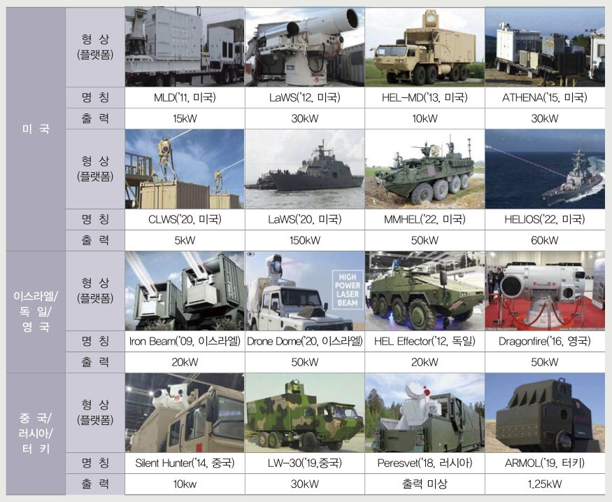 [표 3] 국가별 레이저 무기체계 개발 현황