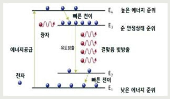LASER은 ‘유도 방출에 의한 빛의 증폭(Light Amplification by Stimulated Emission of Radiation)’의 약어이다. 여기서 핵심은 유도방출과 증폭인데 이는 빛-물질 상호작용에 대한 이론을 기반으로 하고 있다.