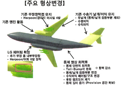 해상초계기라고 이름만 붙여놨던 수송기의 모습과 비교해 보면 엔진을 포함한 주익 미익 모듈은 똑같고