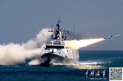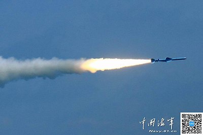 PLAN Type 056 corvette firing YJ-83 anti-ship missile December 2013.jpg