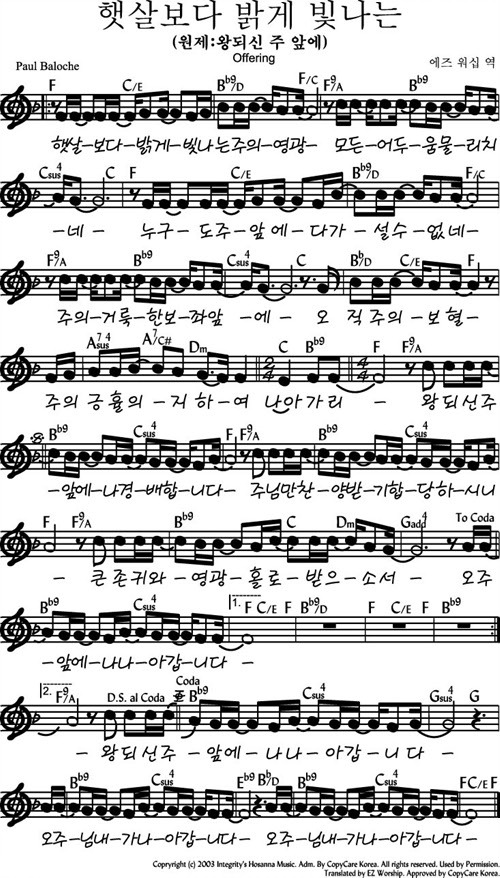 1. 햇살보다 밝게 빛나는 주의 영광