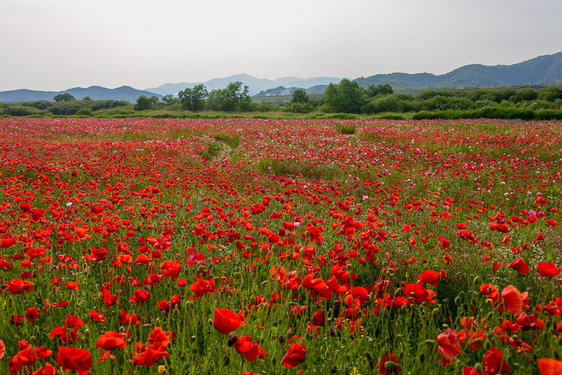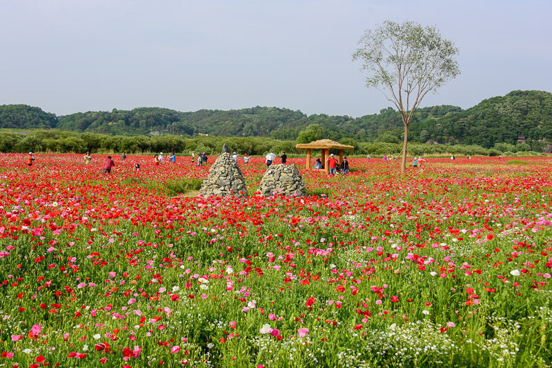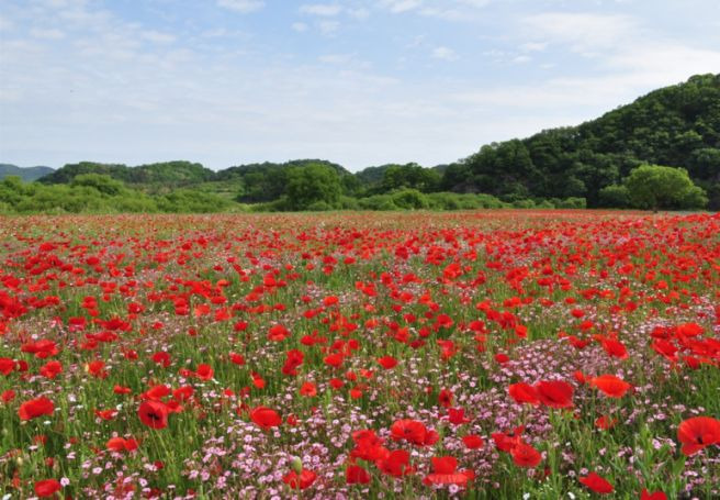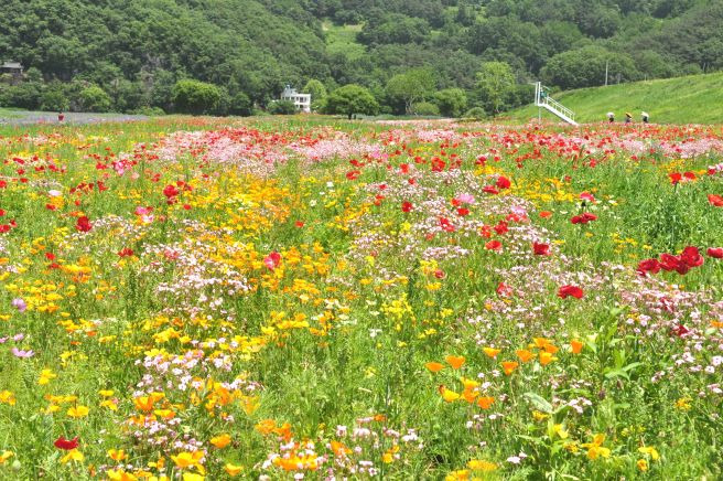 "붉은 양귀비와 황금빛 금계국, 그리고 푸른 수레국화가 그리는 수채화 속으로"
