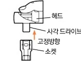 체결 볼트에 맞는 소켓을 장착 소켓의 회전 방향을 맞춥니다.