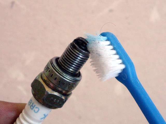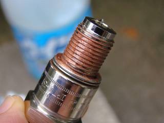 이전의 작업에 다목적 구리스를 도포 한 스파크 플러그를 제거하고 보면, 연소실의 고온에 견디지 못하고 그리스가 모두 흘러 버려, 나사산 부에 남아 있지 않습니다.