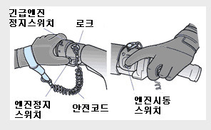 | 4. | 연료탱의 연료를 1회분 사용할때까지는 스로틀을 3/4 이하의 상태로 운전합니다。 |