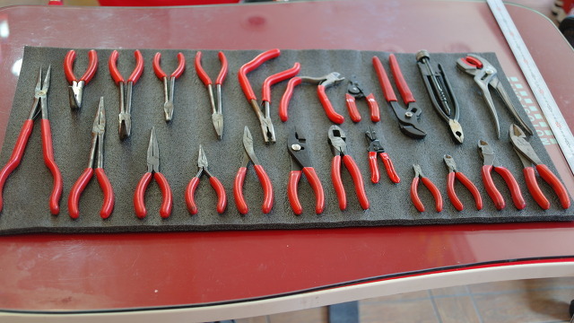 자른 스폰지 위에 정리할 플라이어 제품들을 배치합니다.