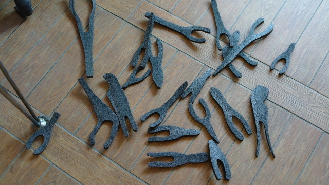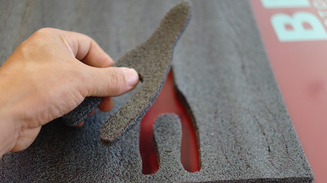 지금 사용하는 스펀지는 어느정도의 경도를 가지고 있으므로 쉽게 잘라집니다. 곡선 부분은 컷터칼을 수직으로 세워서 위아래 톱질 하듯이 돌려가며 자릅니다.