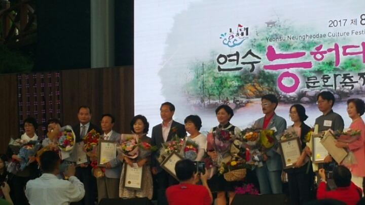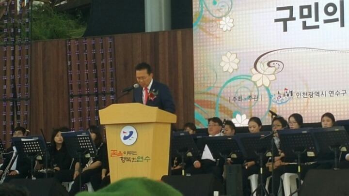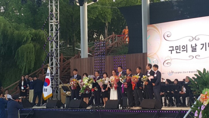 다음은 유정복 시장이 모범시민상과 시상식이 이어 졌는데 이또한 많은 사람들에게 골고루 수여하고 축사가 있었는데 내용은 그동안 인천시 재정이 위험단계에서 정상단계로 이루어 놓았다며 앞으로 더 잘해서 인천시가 잘살수 있도록 노력하겠는 말에 많은 사람들로 부터 박수갈채를 받았다, 이어서 구의장과 국회의원 시의회의장 등의 축사 후 연수구립여성 합창단이 구민의 노래를 끝으로 개회식은 끝났다