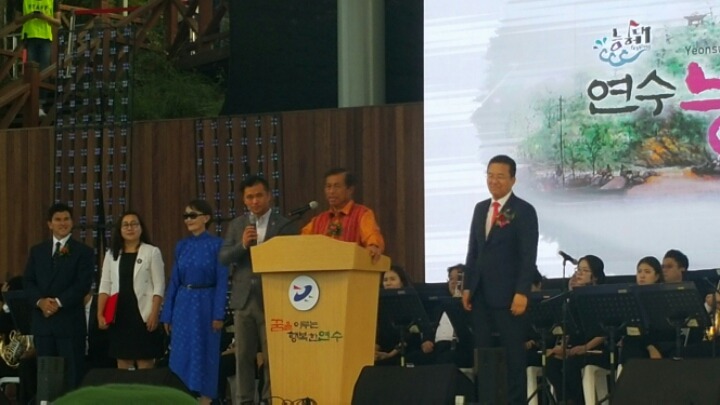 경인방송 원기범 한정선 아나운서 의 사회로 성대히 열렸으며 사회자에 의해 국민의례와 내빈소개가 이어지고 참석한 내빈으로는 멀리 미국과 필리핀 몽골 등 3개국의 자매결연 도시에서도 참석해 축하 메세지를 전하고 국내 에서도 자매결련을 맺은 완도군‘등 3개군에서 참석했으며 연수구노인회 지 조규태님 유정복 시장님 구청장 이재호 구의회의장 이인자 구의원들과 시의회의장 재갈원영 연수구 국회의원 갑.을구등 연수경찰서장님과 단체장들이 두루 참석했다.