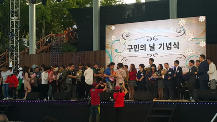 교통 때문인지 휴일인데도 어린이와 가족들이 참석하기에는 교통 불편의 문제가 있지 않나 생각하며 많은 예산이 투여된 것 같은데 더 많은 구민들이 쉽게 참석 할수있는 장소가 아쉬었 으며 구민의 날 기념식식전행사로 오전10시부터 전통혼례식과 국악한마당 Opening Performance 등이 있었으며 전통혼례식과 구민의날 기념행사를 같이 하는 홍보가 많이 부족하지 않았나 하는 아쉬움이 있었다.